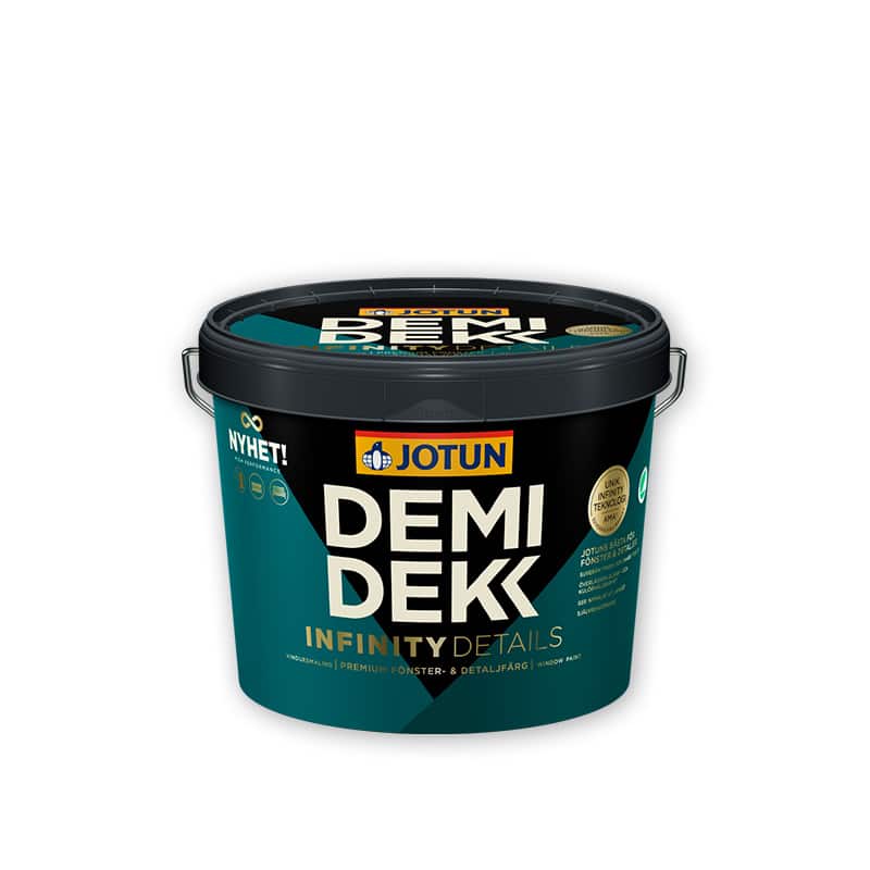 Demidekk Infinity Details is een dekkende zijdeglanzende beits speciaal ontwikkeld voor houtwerk zoals ramen, deuren, kozijnen, dakgoten en andere buitendetails. Het product heeft een uitstekende vloeiing, is slijtvast en zelfreinigend en dus een perfecte aanvulling op Demidekk Ultimate Täckfärg of Demidekk Ultimate Helmatt die je gebruikt voor de complete gevel. Vanwege deze eigenschappen is het product dus ook uitermate geschikt voor tuinmeubilair en schuttingen.