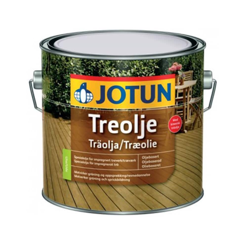 Jotun Treolje (Solvent) gaat vergrijzing en barstvorming van het hout tegen en dringt goed in de ondergrond. De olie is geschikt voor, onbehandeld, onder vacuüm en onder druk geïmpregneerd hout. Bijvoorbeeld gevelbekleding, terrasvloeren, schuttingen of tuinmeubelen. Kan buiten en binnen (voldoende ventileren!) worden toegepast.