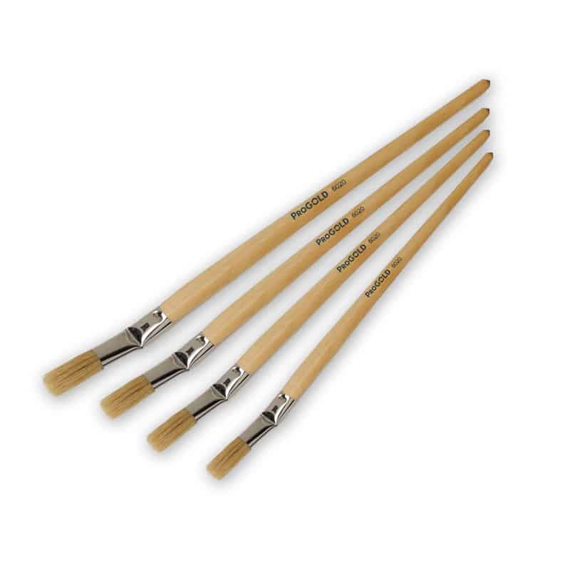 De ProGold Gebogen (lyonse) Penseel 6020 is heeft een blankgelakte steel en wit varkenshaar. Het penseel is geschikt voor synthetische grond- en aflakken en high solids.