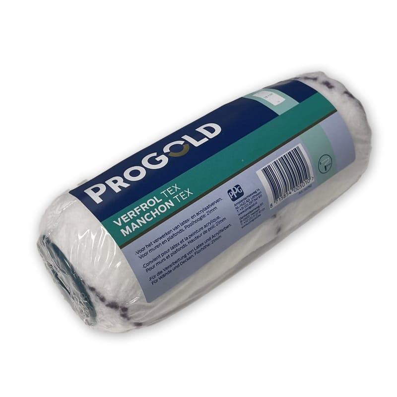 De ProGold Verfrol Tex is een muurverfrol gemaakt van een geweven polyestervacht en heeft een groot opname- en afgiftevermogen. De verfrol is bijzonder geschikt voor alle plafond- en muurverf. Als bijkomend voordeel is dat de vezels van de ProGold Verfrol Tex nauwelijks pluizen. De ProGold Verfrol Tex geeft een fijne en gladde structuur en is hierdoor geschikt voor gladde en licht ruwe ondergronden.
