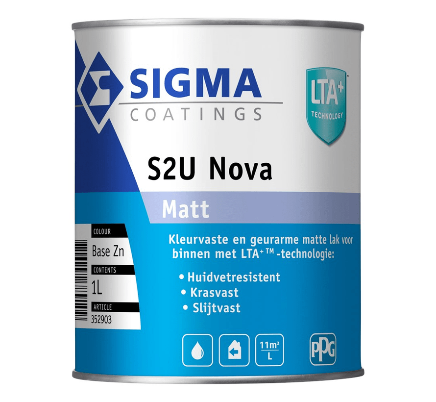 De LTA+-technologie van Sigma garandeert een goede bescherming van het schilderwerk. Je hebt geen last van vlekken door huidvet en van eventuele slijtage die er snel op ontstaat. Dat komt door een beschermend schild, waardoor vet en vuil zich niet aan de verflaag kunnen hechten. In plaats daarvan is de verflaag goed beschermd, om op een mooie en duurzame manier gebruik te maken van Sigma S2U Nova Matt.