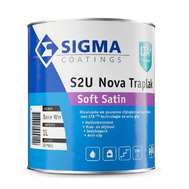 De LTA+-technologie van Sigma garandeert een goede bescherming van het schilderwerk. Je hebt geen last van vlekken door huidvet en van eventuele slijtage die er snel op ontstaat. Dat komt door een beschermend schild, waardoor vet en vuil zich niet aan de verflaag kunnen hechten. In plaats daarvan is de verflaag goed beschermd, om op een mooie en duurzame manier gebruik te maken van S2U Nova Traplak Soft Satin.