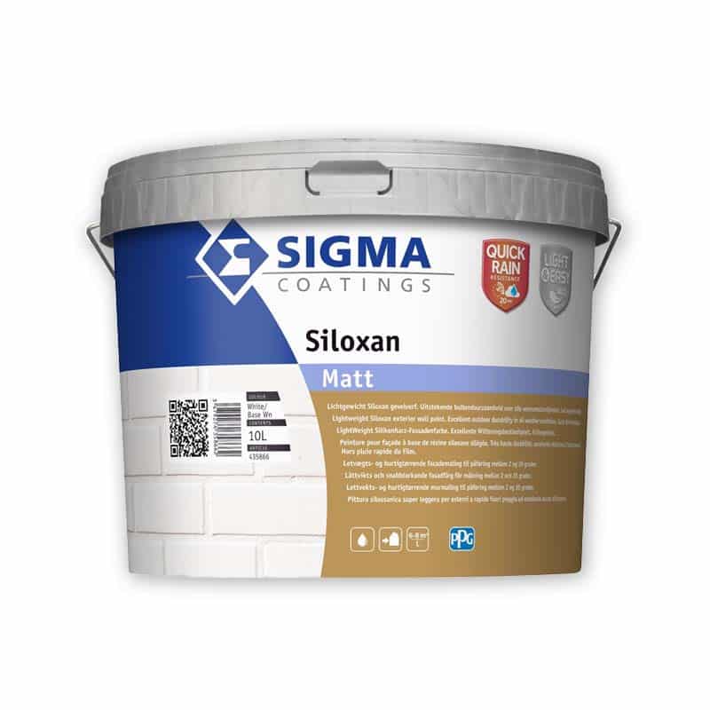 Sigma Siloxan Matt is een universele verf voor het afwerken van gevels van oude en representatieve bouwwerken, woningen en industriële gebouwen waar een hoge waterdampdoorlaatbaarheid gewenst is. Sigma Siloxan Matt is in het bijzonder geschikt voor gevels van gebouwen die onder monumentenzorg vallen. Sigma Siloxan Matt gevelverf staat er om bekend dat hij tot wel 8 jaar onderhoudsvrij schilderwerk oplevert op minerale ondergronden. Denk hierbij aan ondergronden van baksteen, kalkzandsteen en cementgebonden pleisters. Daarnaast is Sigma Siloxan Matt ook geschikt voor het onderhouden van bestaande afwerksystemen op basis van silicaat en kunstharsdispersie. Dit product heeft een goede regendichtheid en zorgt voor een verminderde vuilaanhechting en groei van micro-organismen. Dankzij zijn duurzame eigenschappen heeft deze Sigma Siloxan Matt gevelverf uitstekend kleurbehoud voor meerdere jaren.