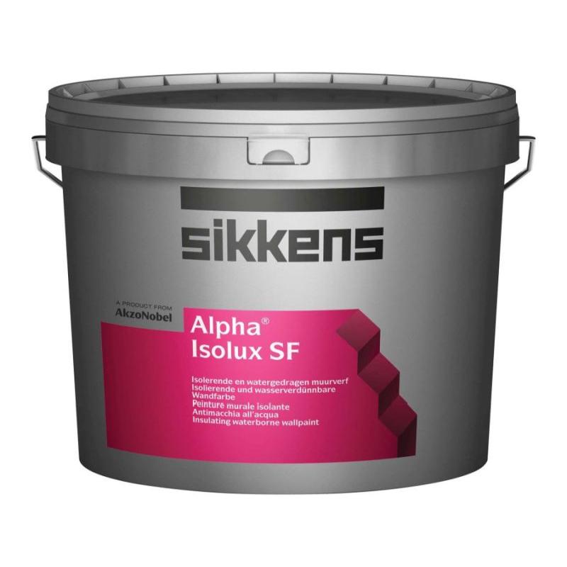 Alpha Isolux SF is een watergedragen, isolerende, geurarme, gladde muurverf voor binnen. Alpha Isolux SF isoleert nicotineaanslag (vlekken), waterkringen, ingetrokken koffievlekken, houtvezelplaten, viltstift en andere vervuiling. Alpha Isolux SF is geschikt voor het behandelen van winddroog beton, schuurwerk, pleisterwerk, metselwerk, gips- en boardplaten, houtwolcementplaten, behang e.d. ter voorkoming van doorslag van diverse typen vervuiling.