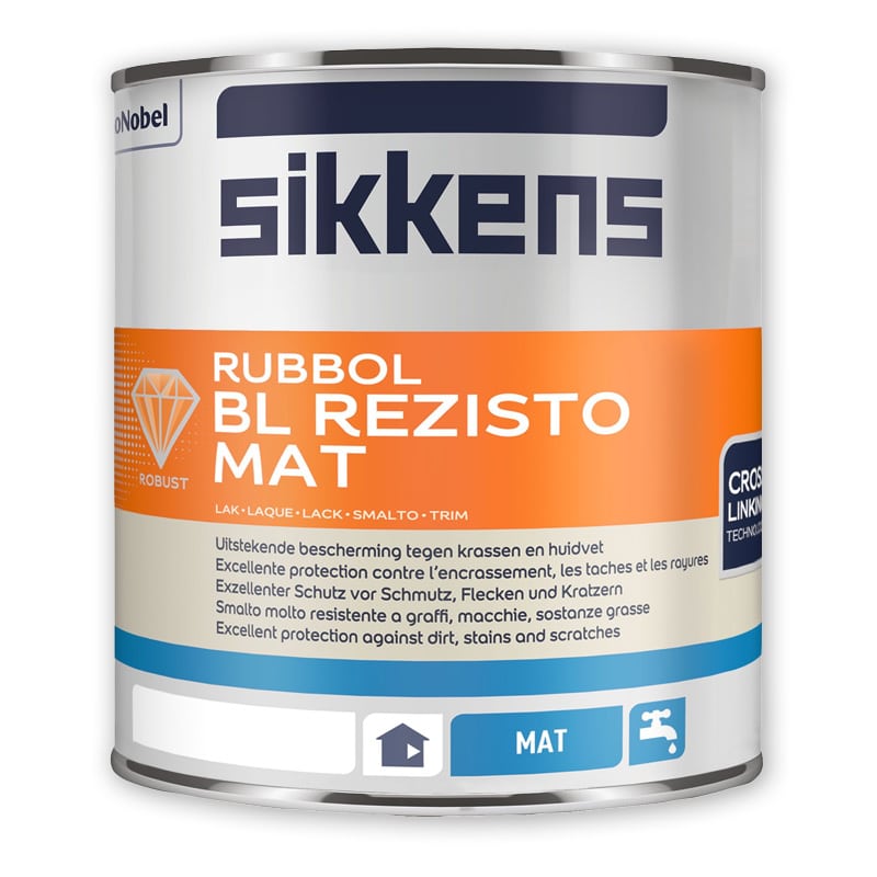Sikkens Rubbol BL Rezisto Mat is een matte lak speciaal ontworpen voor gebruik binnenshuis. De lak is geurarm, bestand tegen hand- en huidvetten, kras-, stoot- en slijtvast, en vertoont geen vergeling. Dankzij de sneldrogende formule en uitstekende vloeiing is deze matte lak ideaal voor het afwerken van deuren, kozijnen en ander houtwerk.