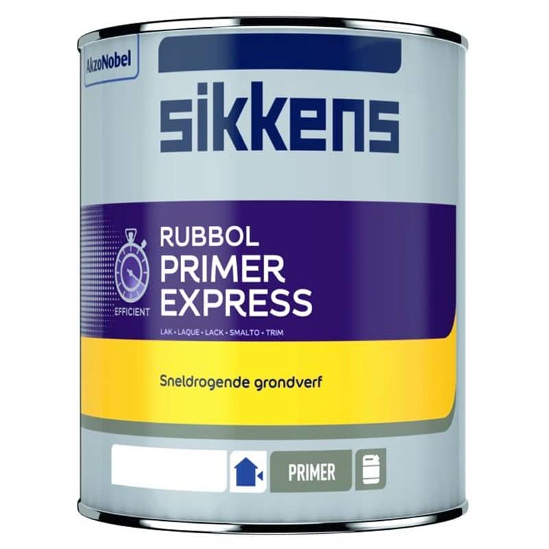 Oude verpakking van Sikkens Rubbol Primer Express. Sneldrogende grondverf voor buiten op basis van alkydhars.