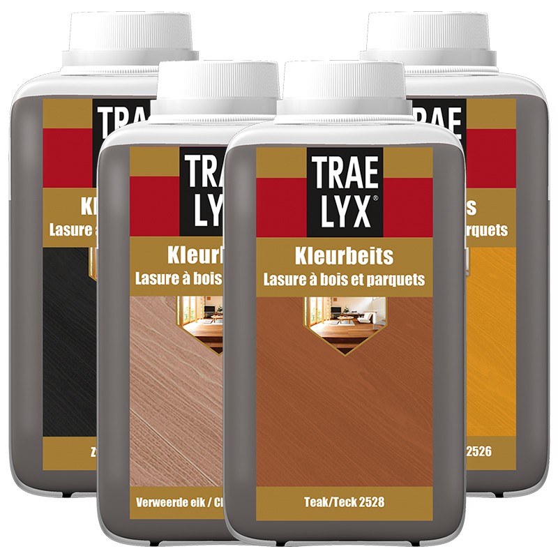 Trae Lyx Kleurbeits is een watervaste waterbeits, die binnenshuis toegepast kan worden op zachte en harde houtsoorten.