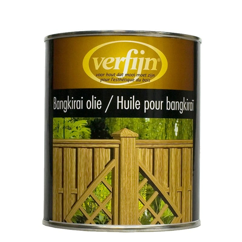 Verfijn Bangkirai olie is een, gebruiksklare, bruin aangekleurde olie, speciaal ontwikkeld voor houten objecten zoals (hard)houten tuinmeubelen, teak, rotan, riet en bamboe die door weersinvloeden zijn vergrijsd. Bangkirai olie is een uitstekend product op basis van natuurlijke oliën welke het hout voeden en terug brengen in hun natuurlijke kleur. Verfijn Bangkirai-olie dringt diep in de poriën van het hout, herstelt de oorspronkelijke kleur van het hout, voorkomt vergrijzing en biedt een uitstekende bescherming tegen alle weersinvloeden.